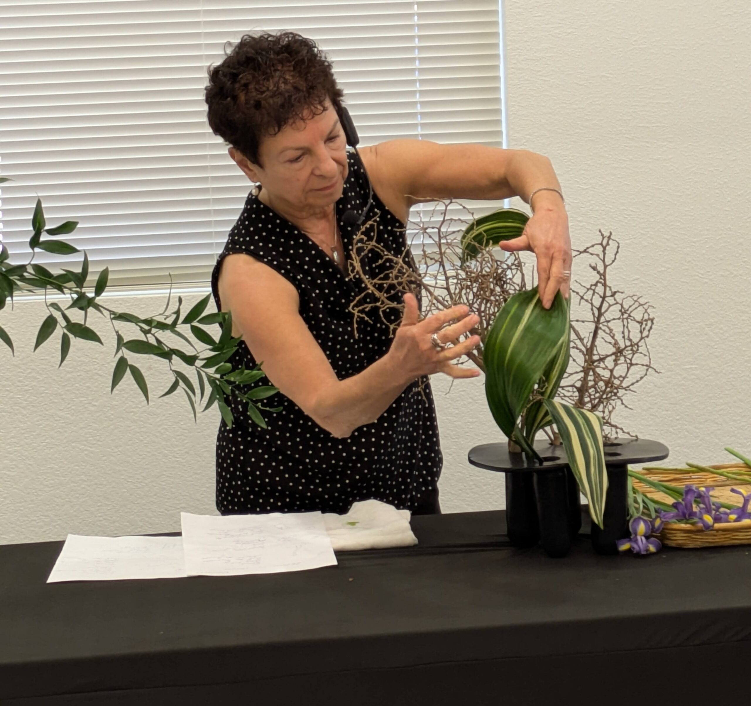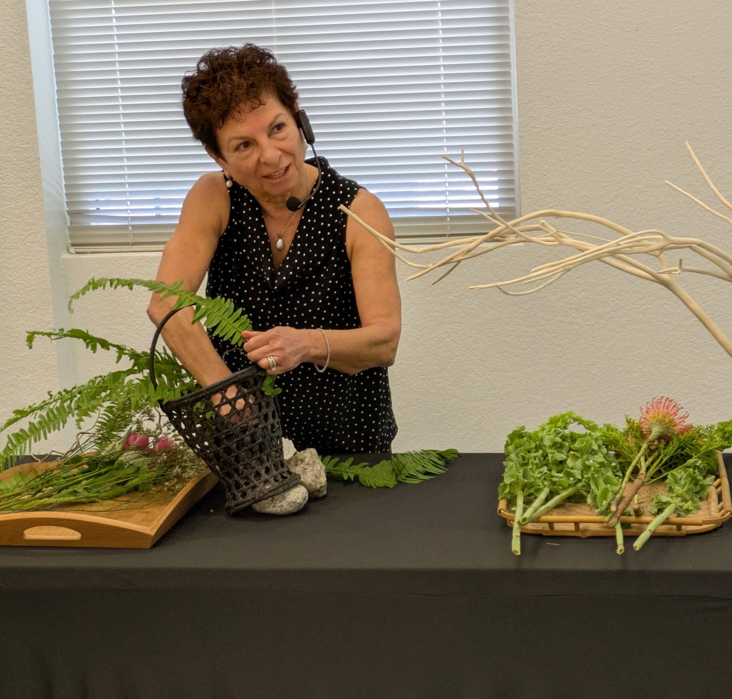 Flowers beware: Sensei Anne-Marie Spriggs (Sogetsu) will twist, curl, and bend you—almost to the breaking point, always to brilliance!